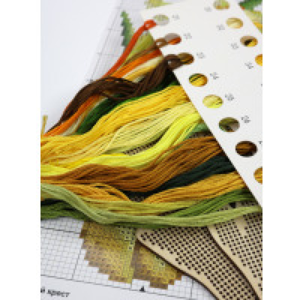 Набор для вышивания крестиком на деревянной основе от бренда «Артика». Комплект три штуки: 9х19, 8х20, 7х18 см. Мулине Luca-S - 23 цвета. Также в комплекте: печатная цветная символьная схема и схема Saga, две иглы для вышивания, фетр.