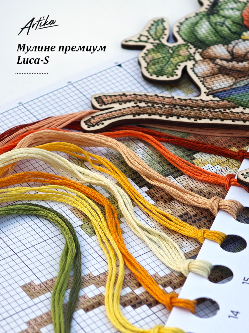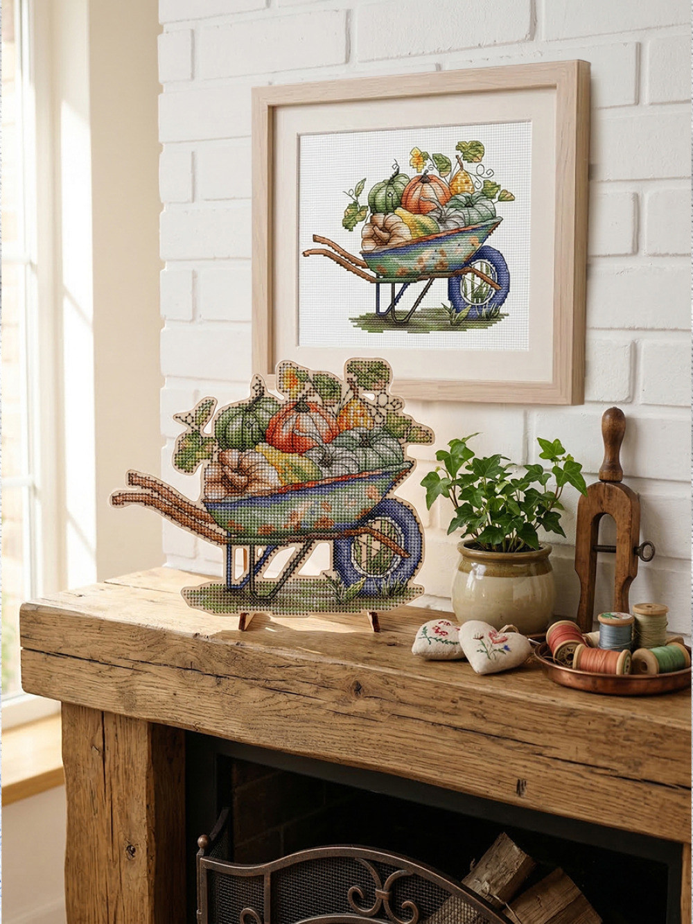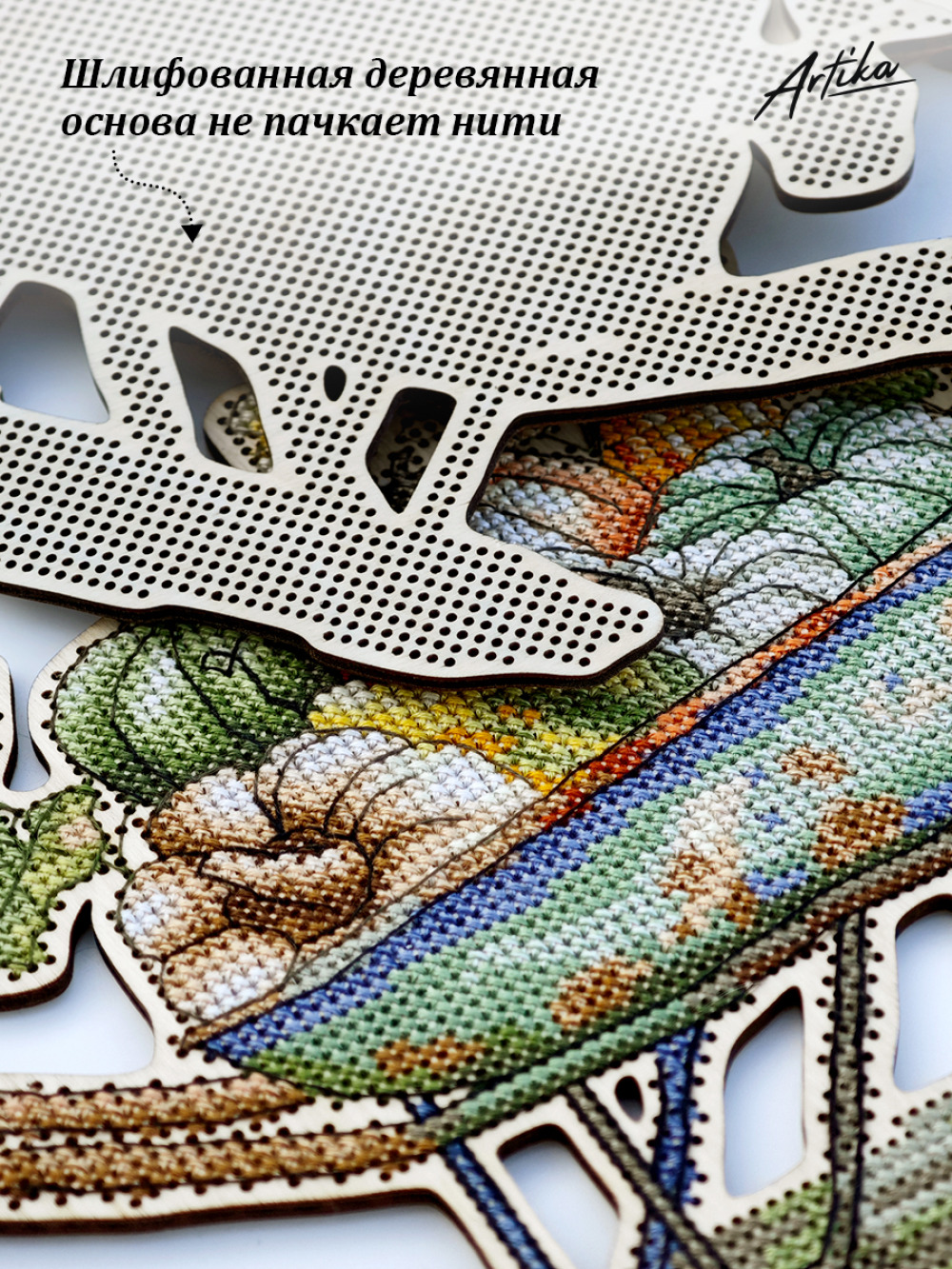 Набор для вышивания крестиком «Тележка» на деревянной основе от бренда «Артика». Размер готовой работы 18х14 см. Мулине Luca-S - 28 цветов. Также в комплекте: печатная цветная символьная схема и схема Saga, две иглы для вышивания, фетр для оформления задней стороны вышивки.