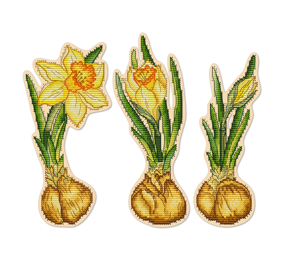 Набор для вышивания крестиком на деревянной основе от бренда «Артика». Комплект три штуки: 9х19, 8х20, 7х18 см. Мулине Luca-S - 23 цвета. Также в комплекте: печатная цветная символьная схема и схема Saga, две иглы для вышивания, фетр.